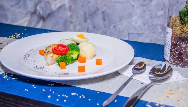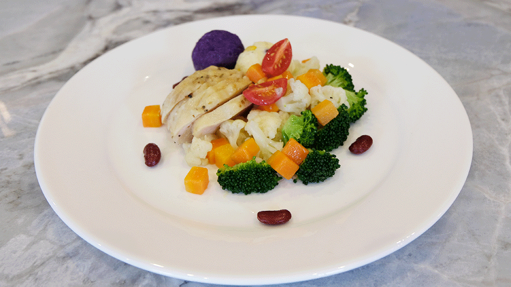 miniko去的那天,午餐是意式黑椒鸡胸排,搭配五种应季果蔬,有西兰花,胡萝卜花菜等,焗烤奶味三色泥,全是最健康的食材做出来的,对胃也很好。