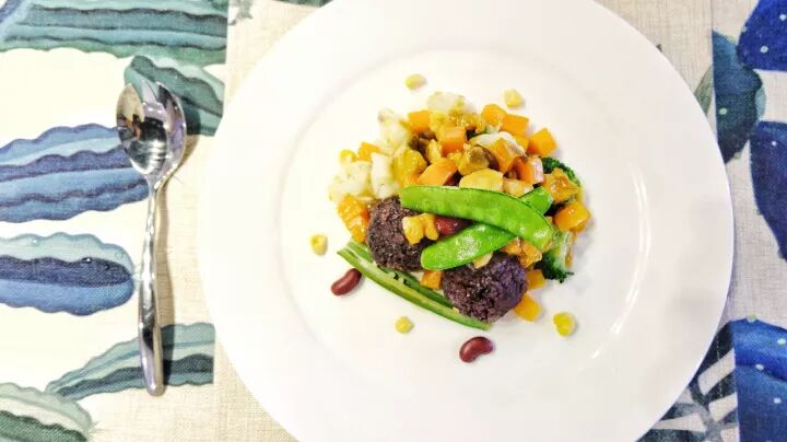 茄汁焗龙利鱼缤纷粗粮饭作为晚餐,真的是好符合miniko的心意。既然有肉,那我就不客气了。五种应季蔬菜及杂豆,满盘的粗粮,比起蛋糕来它倒是可爱许多,毕竟能让我不长肉。