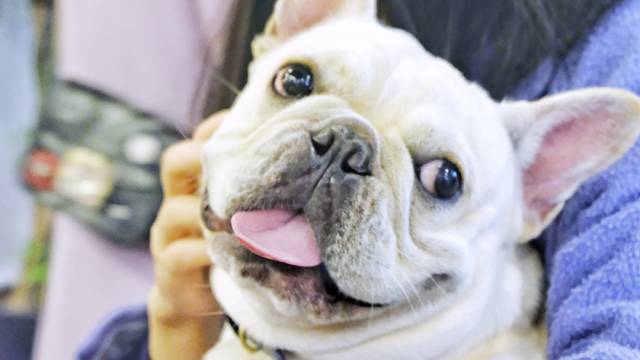 而她们家的吉祥物——肥牛,也是可爱到爆!!!你来练瑜伽,它就来偷看你,一只喜欢美女的小法斗~嘻嘻