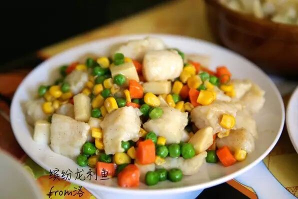 ❻ 锅热一点油爆下葱姜,放蔬菜丁(要是速冻的话炒几下就放鱼,要是现切的蔬菜丁就先放胡萝卜再放青豆再放玉米时间要稍微长点);