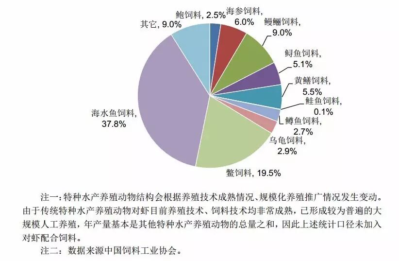 特种水产配合饲料现有结构中,海水鱼配合饲料、鳖配合饲料、鳗鲡配合饲料、海参配合饲料、黄鳝配合饲料和鲟鱼配合饲料是占比最大的六个品种,合计在全国特种水产配合饲料中的占比超过80%。