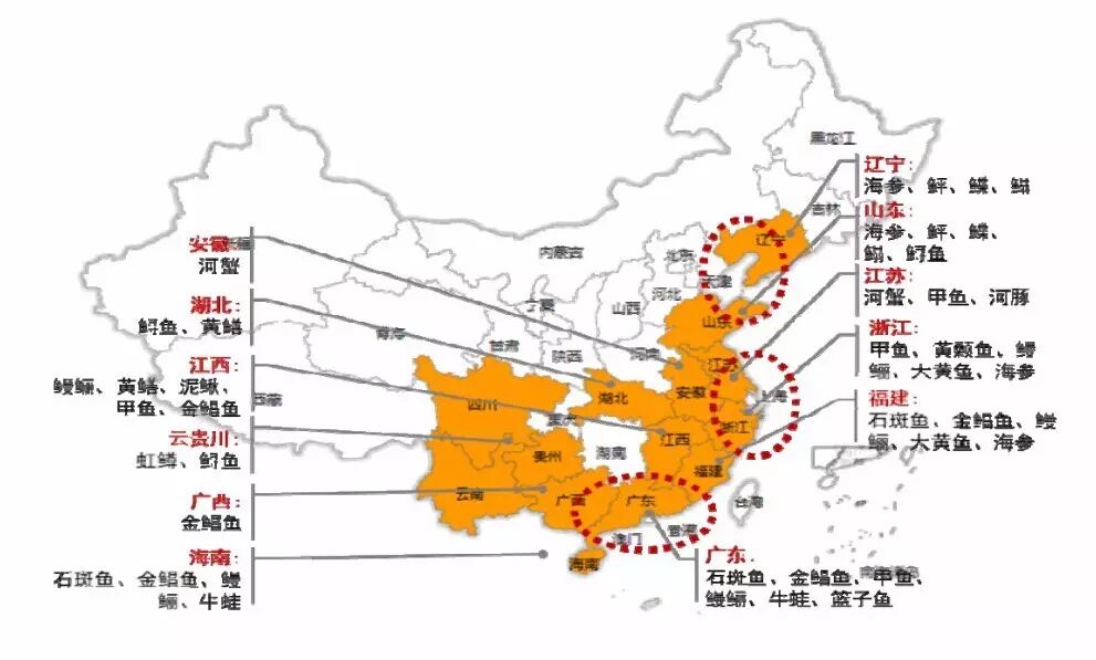 近年来,随着人们消费水平的提高,对营养价值高的特种水产品需求不断上升,为特种水产养殖业创造了良好的市场环境。与此同时,我国围绕渔业增效、农民增收的主题,大力推广优势水产品养殖,特种水产养殖产业带已基本形成,如华东地区的鳗鲡、龟、鳖、大黄鱼、黄颡鱼、鲟鱼、鲆鲽鳎、海参、鲍等;华南地区的石斑鱼、鳗鲡、金鲳、鳖、虾、河豚等;华中地区的鲟鱼、黄鳝、鳖、黄颡鱼、蟹等;东北、西南、西北等地区的鲑鳟、鲟鱼等。
