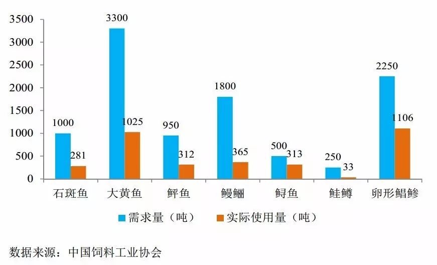 2014年全国主要特种水产种苗早期配合饲料需求量及实际使用量