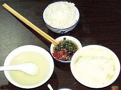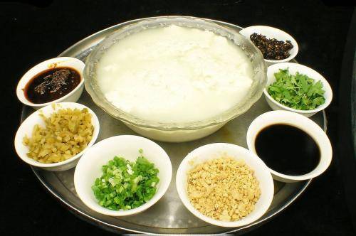 豆花饭好吃与否主要在调料,那个小小的调料碗内容很复杂,老板通常把配料一字排开,自由组合,葱姜蒜、香菜、酱油、榨菜粒、椒盐、味精、芝麻、花生、则耳根末、糍粑青椒、油辣子、糊辣壳、花椒面、熟菜油,差不多二十来种。