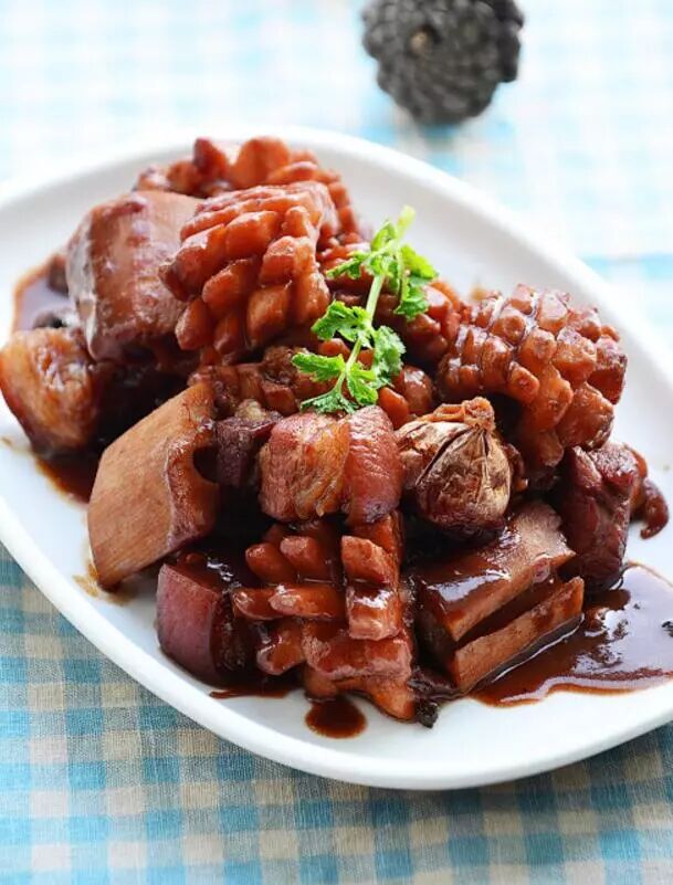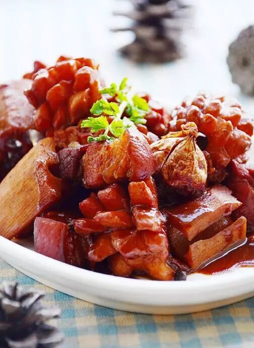 莲藕五花烧墨鱼