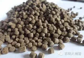 饲料是养蟹的物质基础。河蟹的整个生长阶段,一方面可利用池塘中人工培育的水草、螺蛳等饵料生物,但大部分还要依靠人工投喂。在饲料的品种上,有植物性、动物性和配合饲料三大类。植物性饲料有豆粕、玉米、小麦、地瓜、南瓜、水草、旱草等;动物性饲料有小杂鱼、鱼粉、螺蚬、河蚌、蚕蛹等;配合饲料是采取科学配方将植物性饲料和动物性饲料以及矿物质、维生素等添加剂加工制成的颗粒饲料,具有营养全面、河蟹长势好、投喂方便、饵料系数低、便于存放等特点,目前成蟹养殖大都投喂颗粒饲料。