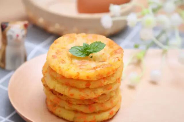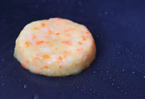 5.锅烧热后刷薄薄一层油,转小火,挖一小勺拌好的土豆泥入锅。压成饼状。定型后翻面,烙熟出锅。