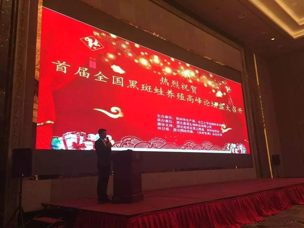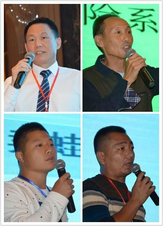 现场演讲嘉宾:惠泽公司技术总监文如金,养殖专家曾双明,湖南益阳养殖户赵少清,潜江市奔虎青蛙养殖合作社负责人万普查。
