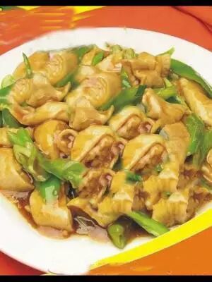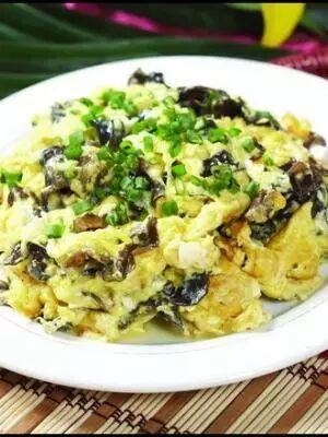 5、再放入木耳块炒匀,然后用水淀粉勾芡,淋入香油,出锅装盘即可。