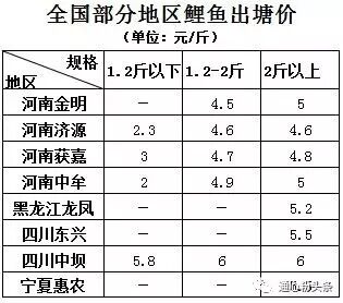下面是全国部分淡水鱼出塘价格,有出鱼需要的朋友可以参考: