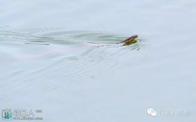 放流小黑鱼之际,一尾水蛇从钓点上方,优哉游哉地游过,抓紧抢拍。