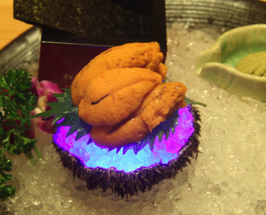 譬如说~~~餐厅一直坚持引进的是加拿大活海胆,大个,肉肥,甘甜