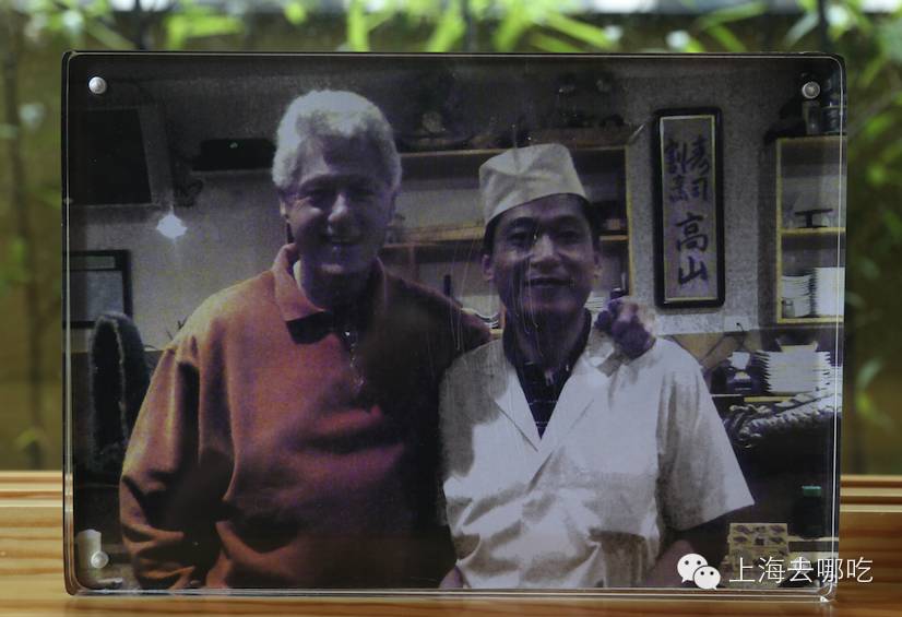 前方注意!!!一个不起眼的小角落里的这张老照片吸引了我们眼球,这不是美国前总统克林顿吗?而旁边这位就是跟刚刚跟我们打招呼的主!厨!先!森!没错!这才是我们慕名而来的主要原因!