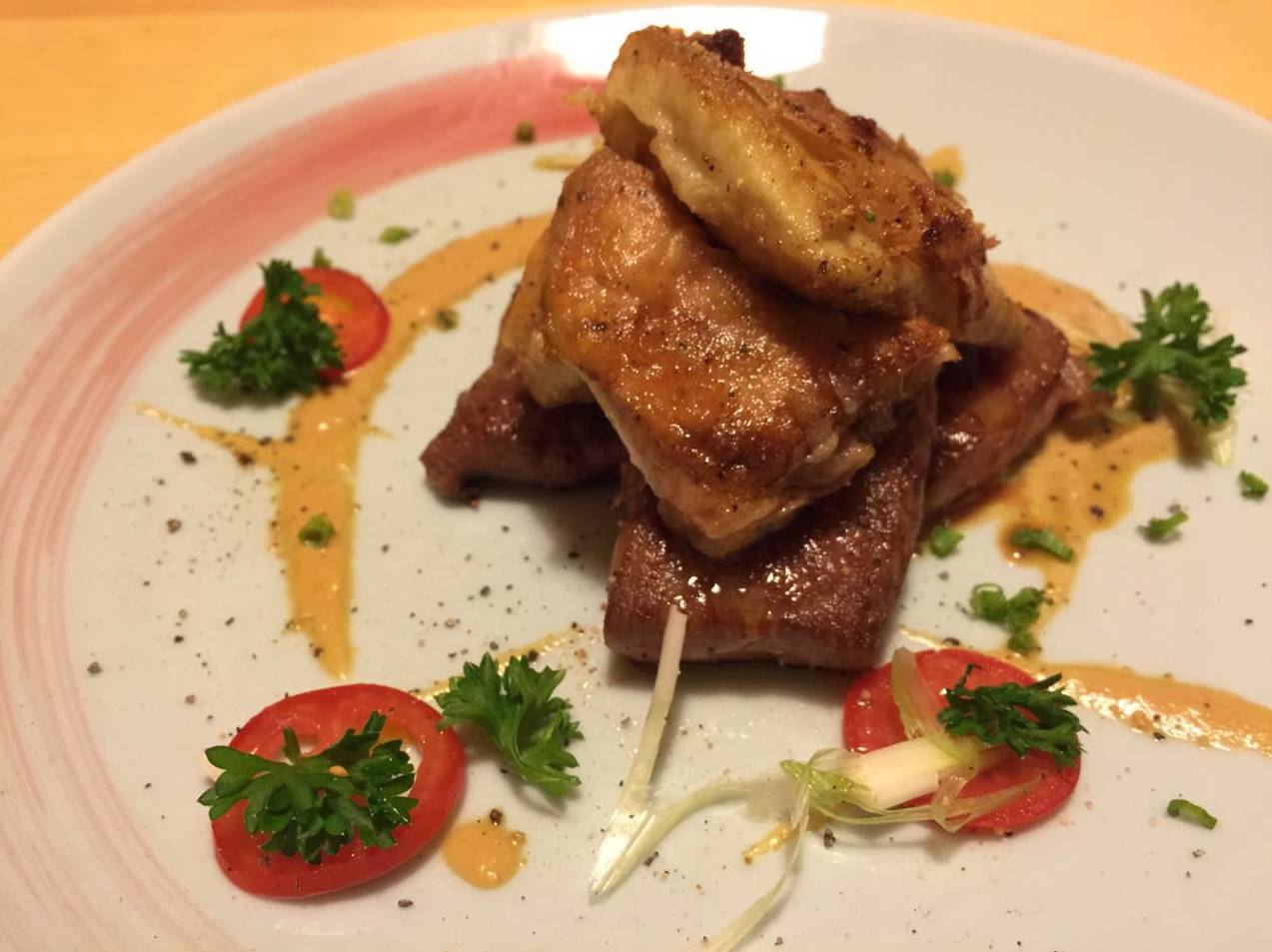 鹅肝与日本和牛的交叠,此道必须一口吞下鹅和牛,鹅肝外焦薄脆,肉里鲜嫩,搭配着和牛的入口即化,小编已经词穷,只觉得舌头好荣幸~~~