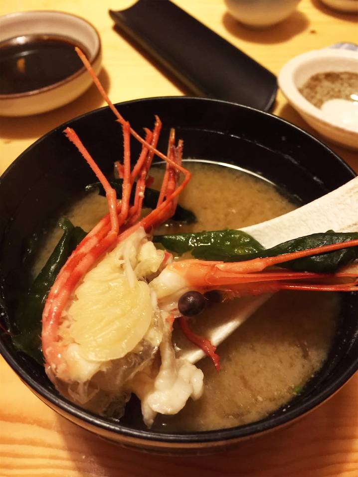 更有甚虾头足足有一根拇指那么长!吃完刺身可以选择盐烤,烧汤等多种吃法!~小编选了烧汤的吃法,凑上桌鼻尖鲜到眉梢啊哇卡卡~
