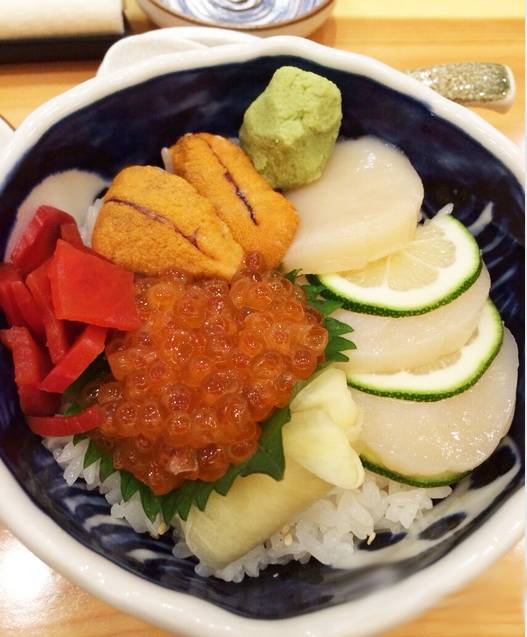 最最满足的是这一碗三色拌饭,超大颗鱼籽,活杀扇贝,活海胆黄,绝配醋米饭打底,十足的新鲜正宗,这一碗妥妥滴填满了我们一颗日料控的心房啊~~