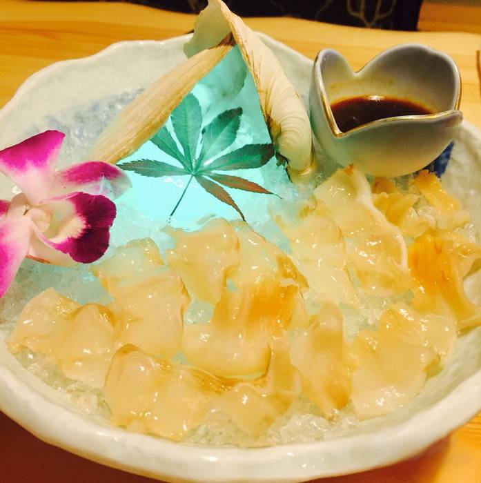 活扇贝现杀,完全有别与平日吃到的扇贝好么~~脆脆甜甜的,如同刚刚从海里撩上来一般,沾点芥末入口,嗯~~简直新鲜到七窍生烟……(☆_☆)