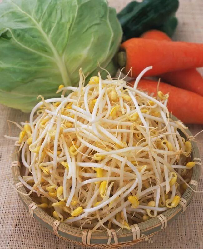 豆芽:黄豆芽含干扰素诱生剂,增强体内抗病毒、抗癌肿能力。