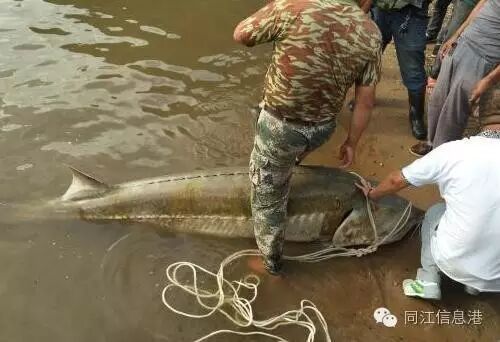 ,黑龙江省同江市渔民21日在捕鱼作业时捕获一条罕见鲟鳇鱼,重达400斤。