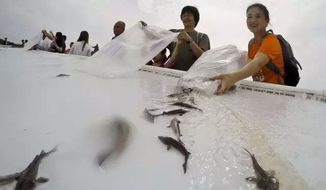 8月8号,为了让中国的大马哈鱼和鲟鳇鱼回家,阿里巴巴公益基金会、永续自然资源保护公益基金会、抚远市政府共同举办鲟鳇鱼放流活动,倡导水生态环境保护及可持续发展。