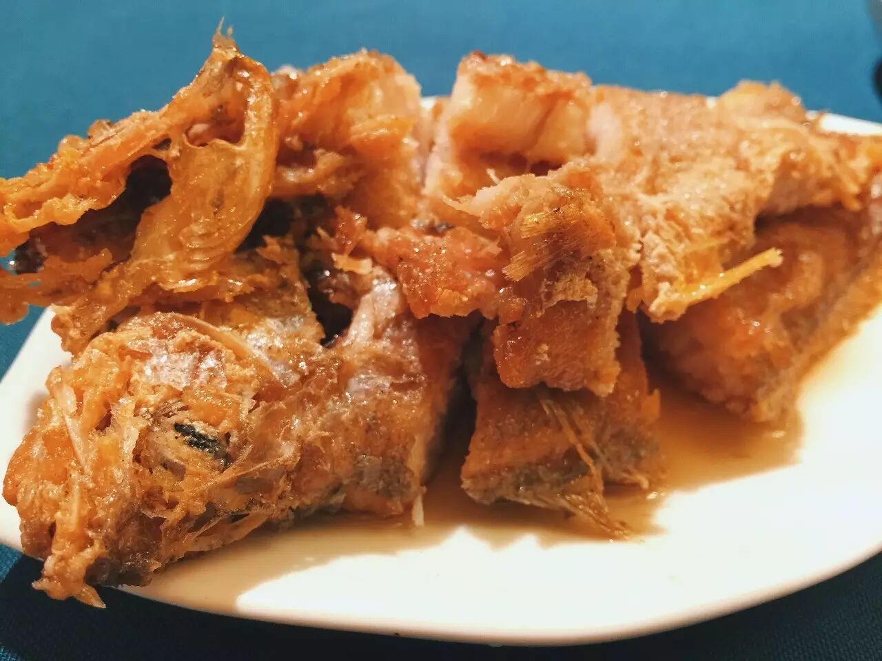 冷菜香糟小黄鱼先煎后糟,酒味十足带一点咸味,鱼肉是煎带鱼一样的滑实感。最爱部位是鱼头,酥嫩的可以全部吃掉。没有煎小黄鱼的油感,但骨头仍然酥脆,但鱼尾有些咸了。看来如何在同样制作环境、时长下,同一种食材的不同部位如何保持均衡水平是个很有趣的问题呢