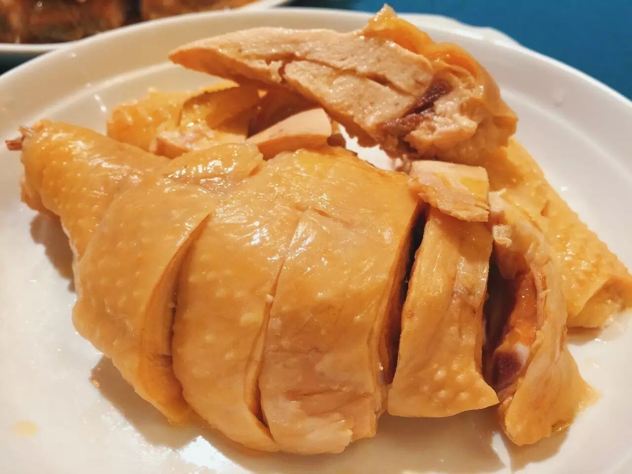 花油露鸡有三选,在葱油鸡和白斩鸡中犹豫了半天终选了白斩。鸡皮嫩带一点脆,皮下一层鸡油香,肉靠骨处带点红和一些胶质。鸡腿也美,皮、油都好,还有一点点脆脆的筋