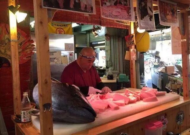 在黑门市场吃金枪鱼肉可是有更多的讲究,不仅仅只限于中腹、大腹等常见部位,也有与众不同的地方等待你去挖掘,由于量小还有料理商一般不会去选用这一部分食材,所以尝试各种不同金枪鱼的部位会来的更加便宜。