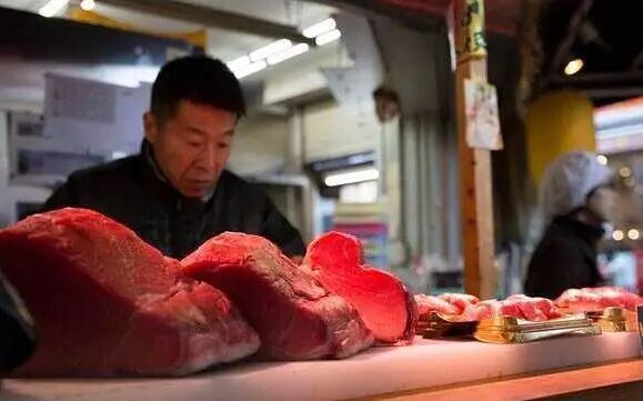 首先来说一下黑门市场三剑客之一的金枪鱼,这种鱼类被日本人称作「鲔鱼」,蓝鳍金枪鱼则被称之为「黑鲔」,金枪鱼鱼肉无论是被用在生鱼片或者是寿司上,口味都可以说是一绝。