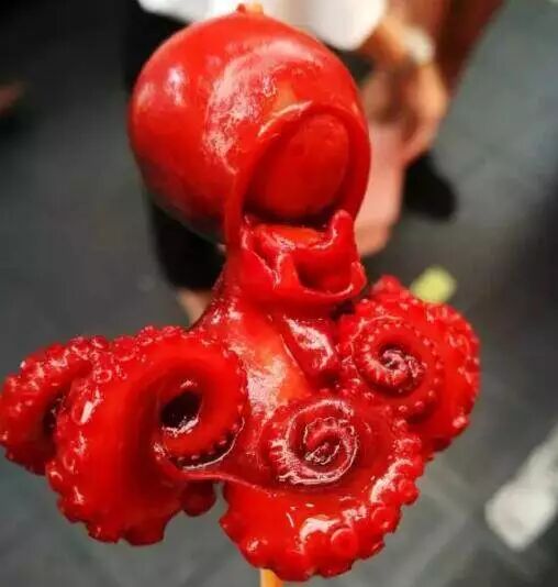 鱿鱼蛋这种小吃就是把煮熟的鹌鹑蛋放进了鱿鱼仔的头里,由于做的相当烂熟,鱿鱼仔夹杂着蛋香,有种软糯香醇的独有口味。