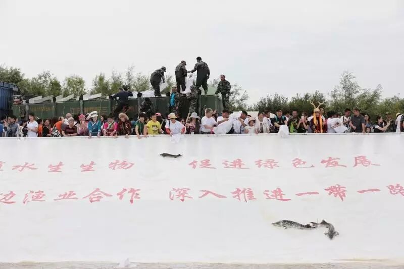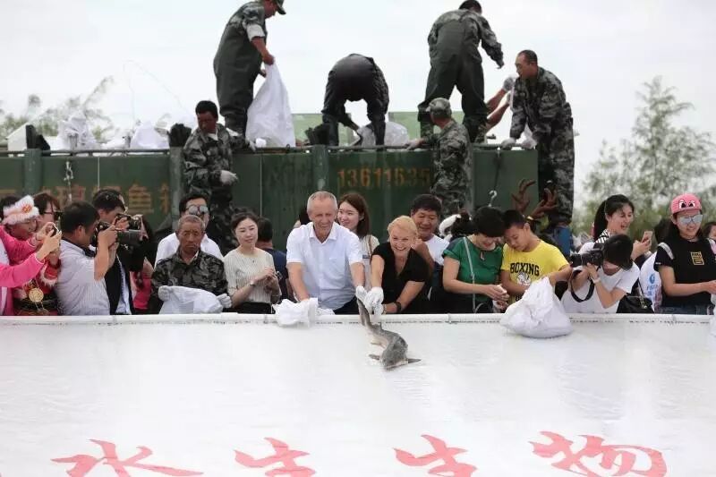 现场,国家工商总局、抚远市政府、阿里巴巴集团、俄罗斯哈巴市政府的领导,以及永续自然资源保护公益基金会、大自然保护协会、桃花源生态保护基金会、抚远市鲟鳇鱼保护协会、大马哈鱼保护协会等机构的公益人士和社会爱心人士组成的百人“放流团”在黑龙江畔参与放流。放流的除了20万尾鲟鳇鱼苗,还包括200尾20斤到200斤不等的大鱼。