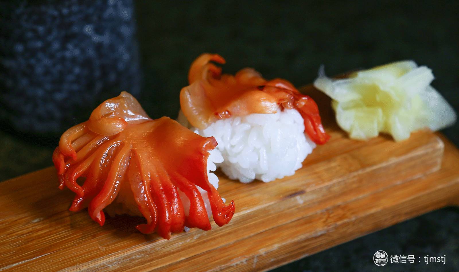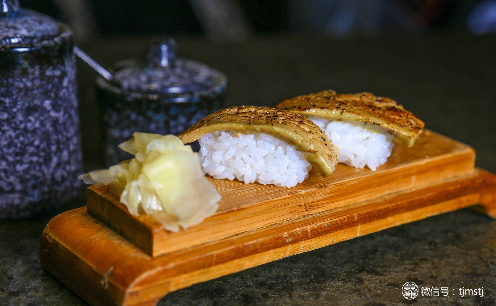鹅肝的品质直接影响到寿司的品质,精选进口鹅肝,里面是不允许带一丝的血印,也绝不允许任何的血筋抽掉的穿孔。一整个塞进口中,鹅肝感知舌尖的温度随刻融化,重点是完全没有一丝腥味。饭团松紧适度,夹起来不散架,入口松化,丝丝酸甜调动了整体风味。