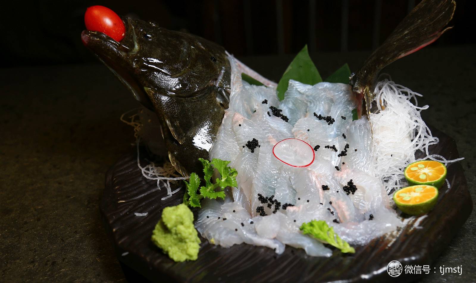 料理左口鱼的时候,它还一直在顽强的挣扎。没想到晶莹剔透的鱼片摆好盘上了桌,还能看到鱼嘴一张一合的喘息着。夹起一片蘸些许酱油,入口极其鲜美。肉质细嫩带有弹性,连着吃三片丝毫不觉腻口,倒是清爽的很。