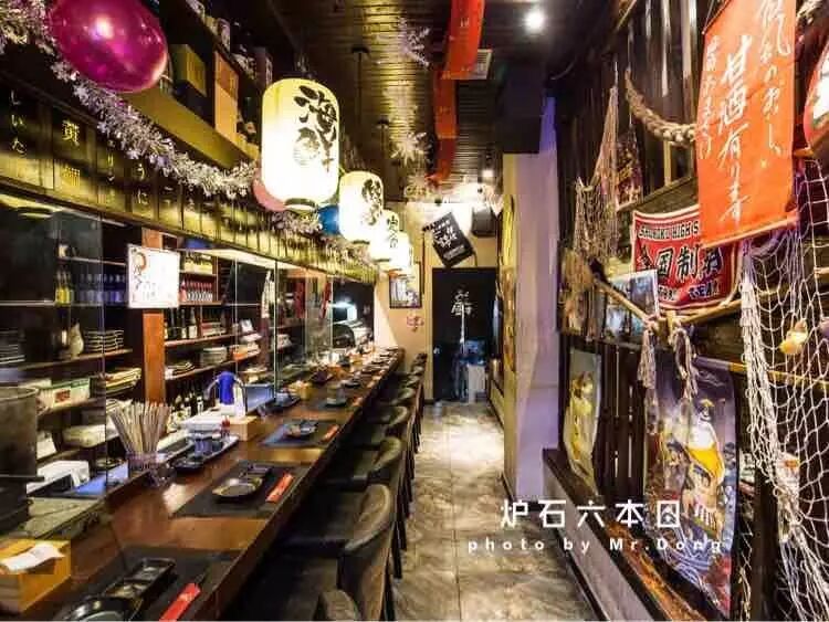 走进炉石六本目,店内装潢从灯光到陈设都充满了日本传统特色。
