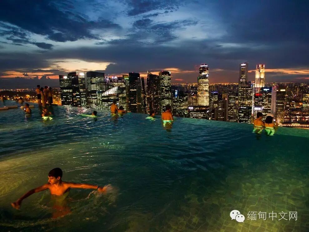它是号称当今世上最昂贵的酒店。这是一个耗资40亿英镑打造、拥有室外泳池、观光平台、豪华赌场等高档设施的度假酒店。最令人叫绝的是,宾客们可以在游泳的同时,俯瞰新加坡的城市景观。