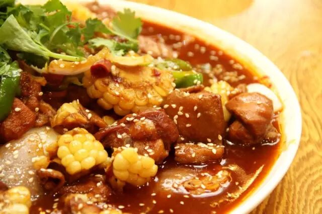 丰富的配菜不仅可以解除油腻,荤素搭配,而且各种食材的口味混合更是出了飞一般的口感。比如洋葱和鸡肉的搭配,简直绝了!(还有的吃货专门跑来吃炒鸡里的玉米我真是醉了!)