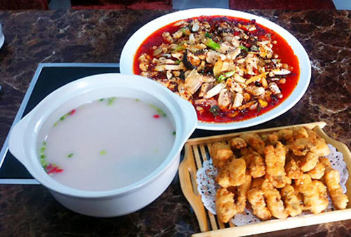 【上榜理由】凤凰菜的最大特色是以辣酸为主色,以炒功为上乘。县里出产一种带糯性产量极低的小米,一般选用较肥厚的细嫩猪肉,拌合浸泡好的小米,加上可口的佐料,放在锅里蒸煮,待小米和肉熟透后即可。鲜美可口,极富营养价值。