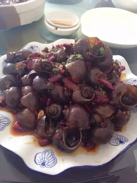 他家算是一家老店了,每次去人都很多,去晚了都要排队,可见味道有多赞。有一点像水煮鱼,不过没有水煮鱼那么油,有蒜香和麻辣两个味儿,都很入味好吃,蒜香清香爽口,麻辣味的香辣可口。因为鱼是现杀的所以鱼肉嫩滑,点鱼会送四个小菜。