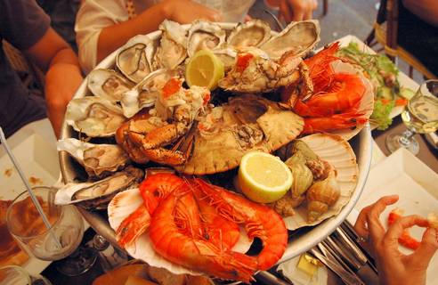 扇贝、鱿鱼、大虾、海鲜海鲜海鲜....