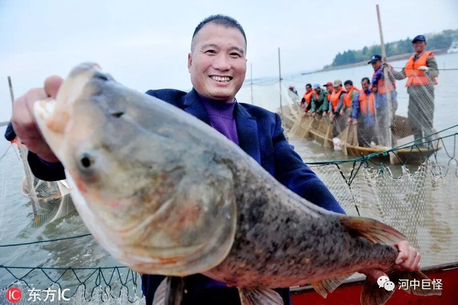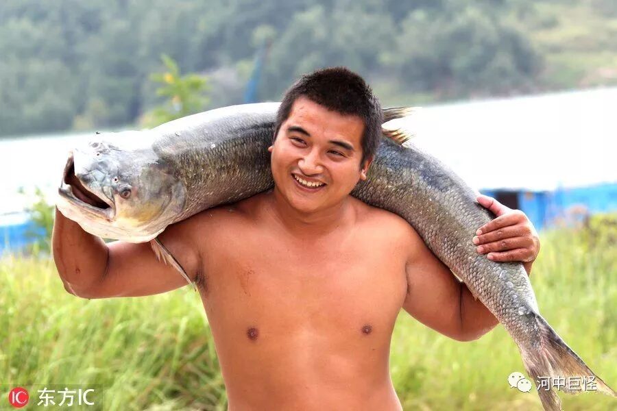 2017年9月16日,丹江库区水位上涨,大鱼出没,亚洲最大的人工淡水库河南南阳丹江大观苑,捕鱼者布下“迷魂阵”捉住一人高“鱼王”,开来起重机钓鱼,将一网大鱼吊至板车上拉走,现场引民众围观合影,现场还有一名美女和鱼王比高低,发现自己和“鱼王”鱼王长得一样高。据了解,这种捉鱼的“迷魂阵”是倒关门,鱼是只能进不能出,进去后就迷路,有去无回。