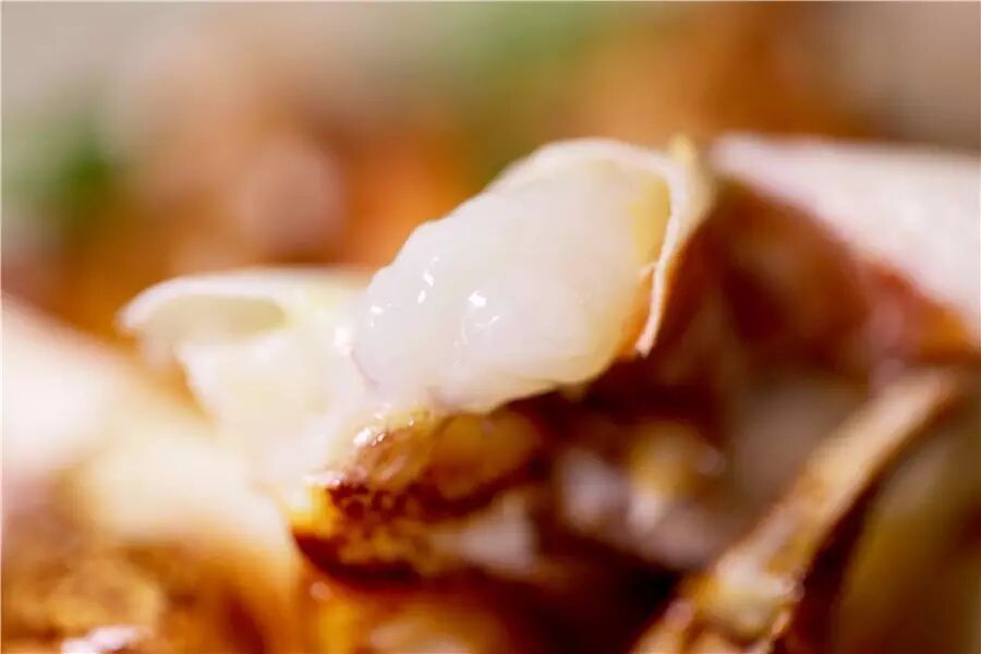 白嫩肥美肉质交错牵扯着细致纹路伴随着蟹香呈现在面前。