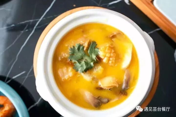 佛跳墙是一道不常见的菜,主料精选鲍鱼、鲨鱼肚、海参、山筝、平菇等,把天上跑的、水里游的、山上长的山珍海味都包括在内,配以多种调料及家养老母鸡、金华火腿、鸽子、排骨、南瓜蓉等几十种原料精心煨制而成。一揭开盖,就被浓郁的热汤香气和食材的鲜香所包裹。煲了3个小时的炖汤色泽清亮,入口微甜,炖罐里的肉则是入口即化,荤香可口。