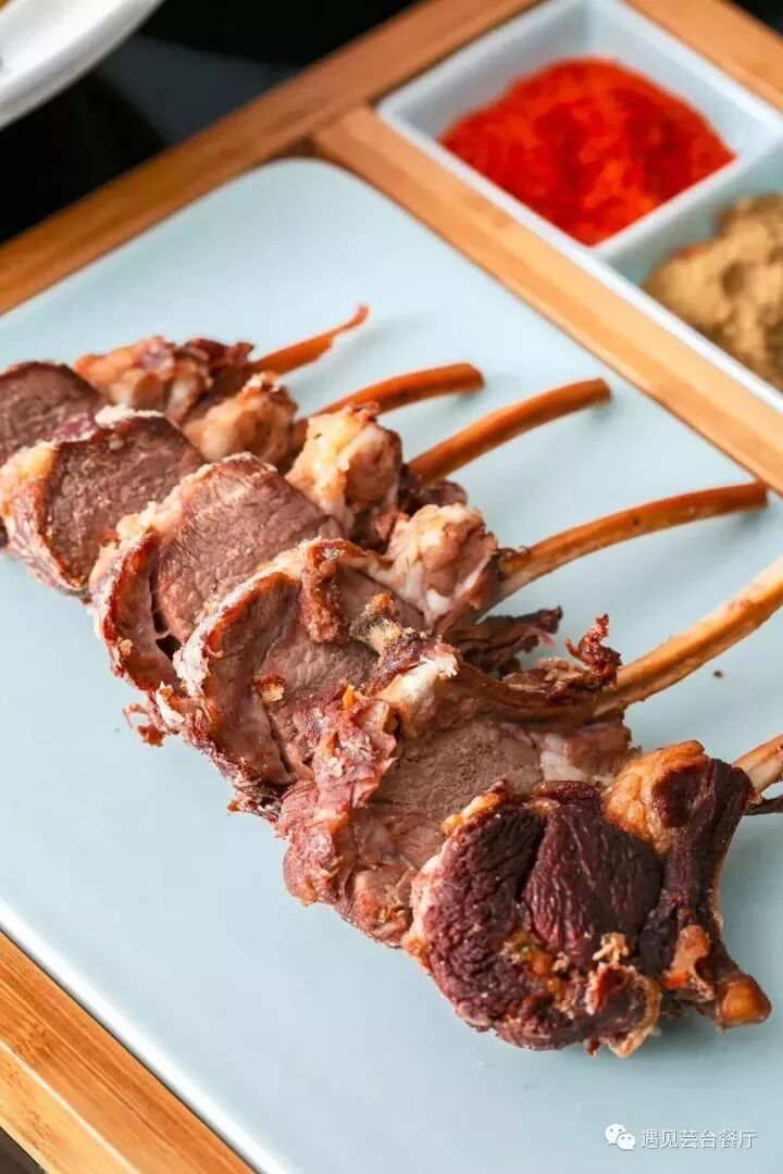 选用新西兰6骨羊排,羊排带皮,外皮被炸得非常酥脆,会有些迸油,里面的肉质松软香甜,撒上辣椒粉和孜然粉,香味蹭蹭蹭的出来了,再配上他们家独有的甜辣酱和面酱,会多一层香甜的味道。