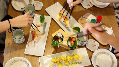 三文鱼手卷和鳗鱼黄瓜手卷拿在手里萌萌哒~哼!我说的是小哥萌萌哒~