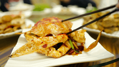 如果你不懂吃海鲜,可以照着扎堆这样点,还可以选择加一份白灼的基围虾、辣炒的三点蟹等。这些都是本地人常点的好吃不贵的海鲜。扎堆试吃团的小鲜肉们对吃皮皮虾、花螺还是初体验,吃得喜气洋洋~