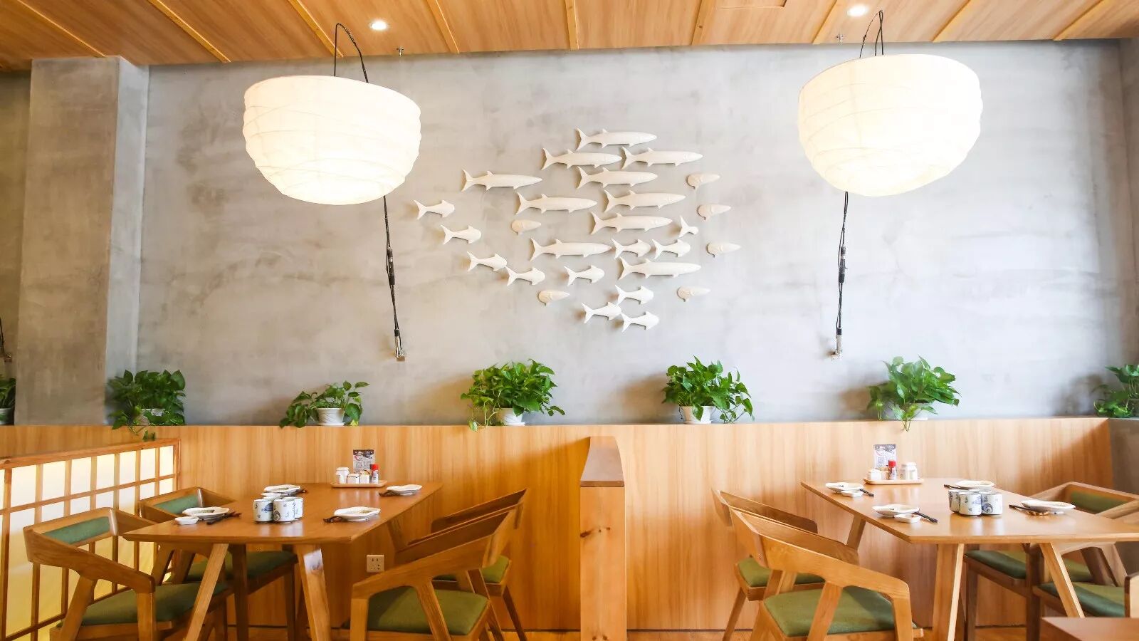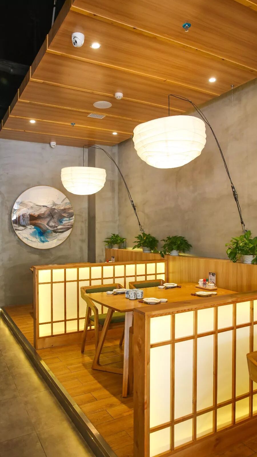 一家日料餐厅,整个环境布局简单大气,装修的很雅致。