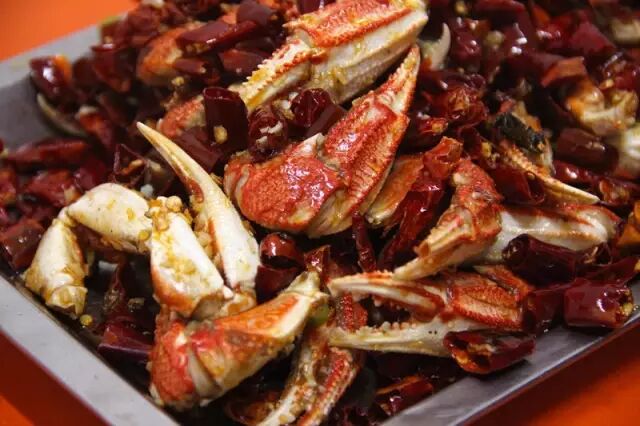 外带冠军“蟹钳”小朋友,向大家举爪致意。吃两份,带两份是常事儿。讲真,小编有不下十个朋友对我说过,他家的蟹钳是全洛阳最好吃的。提前两个小时腌上,把味全部腌进壳里,配以秦椒和本地干辣椒爆炒,从里到外,鲜香麻辣,锅气迷人。与洛阳宫成为最佳CP组合。(因为壳多肉少,适合细法人吃。像小编这种糙汉子,唆唆也是幸福的。。)