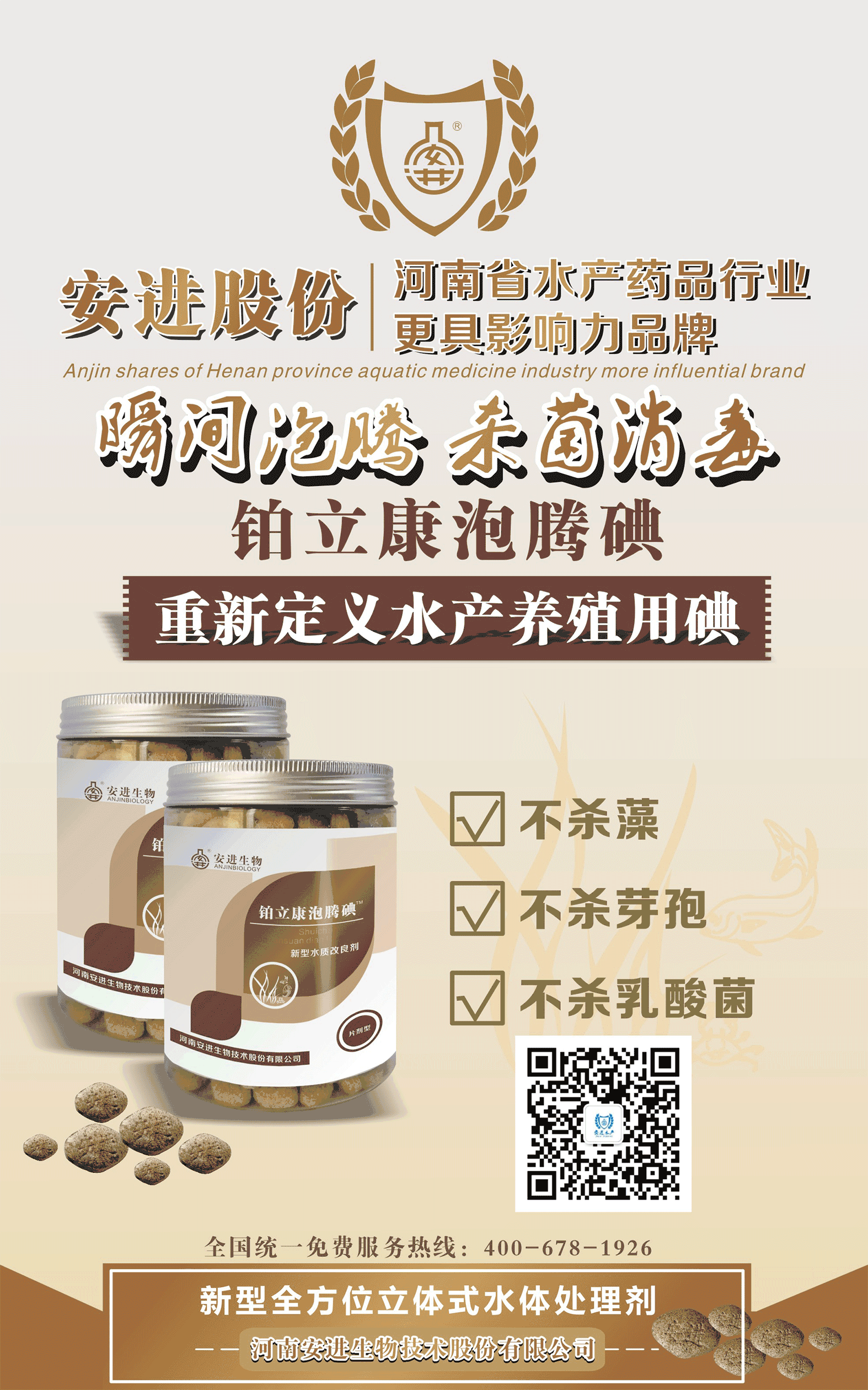 治疗:内服黄连康1袋+出血烂鳃停2袋+肝宁2袋+白便白斑宁2袋+酶益添1袋+复合免疫多糖1袋拌料40斤,连喂5天。外泼噬菌肽2亩/袋,两小时后黄连康1袋+铂立康2瓶混合浸泡半小时后全池泼洒,晚上安进巨能氧片剂型1袋/亩,连用3天。