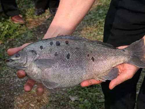 宝石鱼的外形极为诱人,其体色银亮,体侧有多少不等黑色发亮的椭圆形斑块,宛如镶嵌在鱼身体表的黑宝石,称之为“宝石鱼”真乃名副其实。