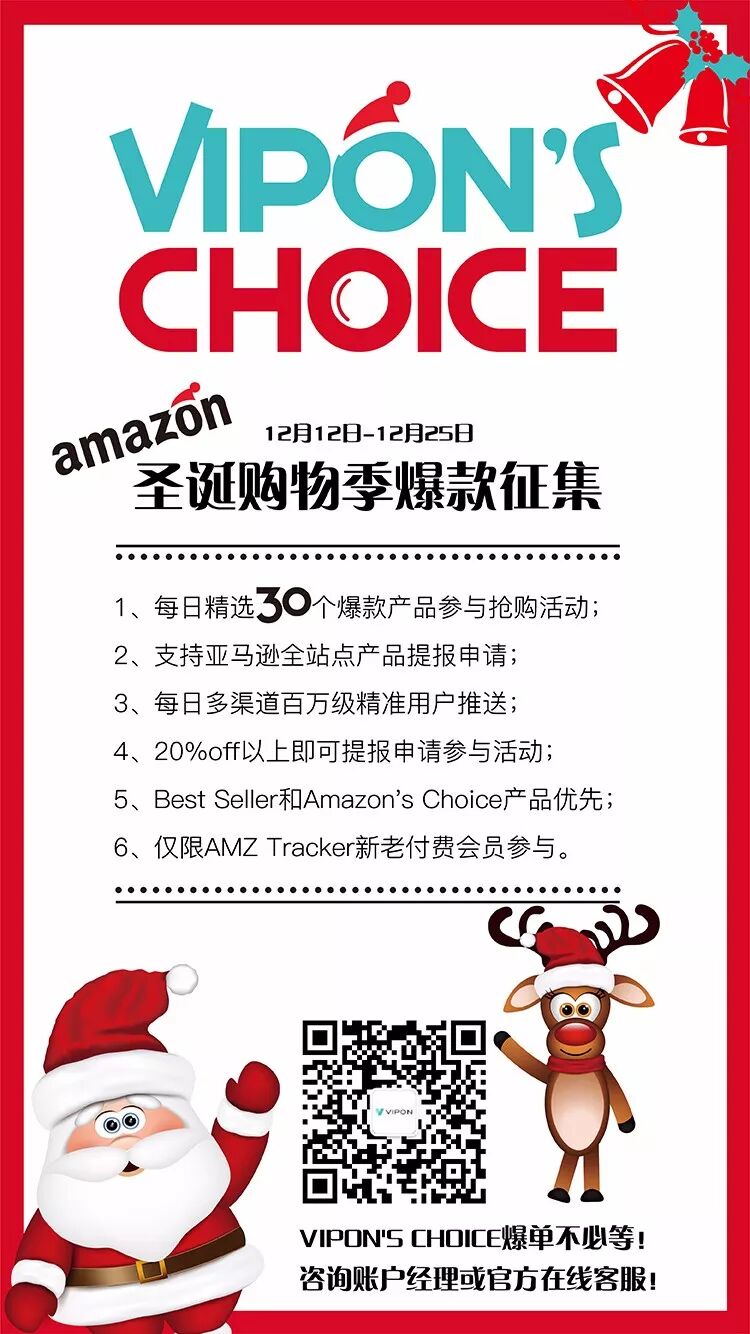 亚马逊折扣促销平台VIPON将在12月12日-12月25日期间举办圣诞促销活动!活动期间,VIPON将精选优质产品在VIPON官方网站圣诞专题页面展示!