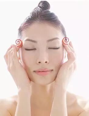 2、用中指和无名指按住太阳穴,然后用力的以画圈圈的方式按摩。用力地给太阳穴按摩的话有利于快速的去除起床气,重新恢复眼睛的清澈明亮。对于经常用眼的人来说,可以有效地去除疲劳。